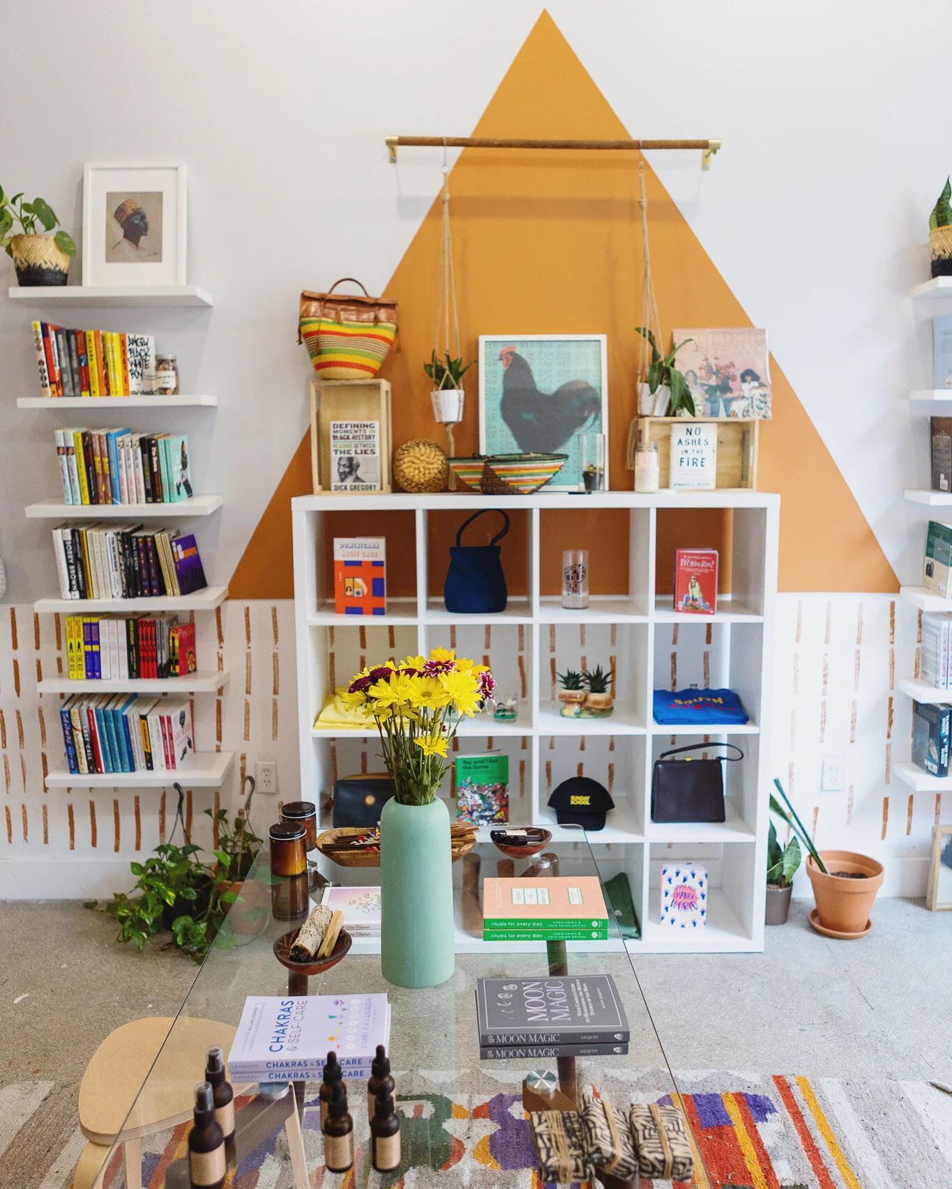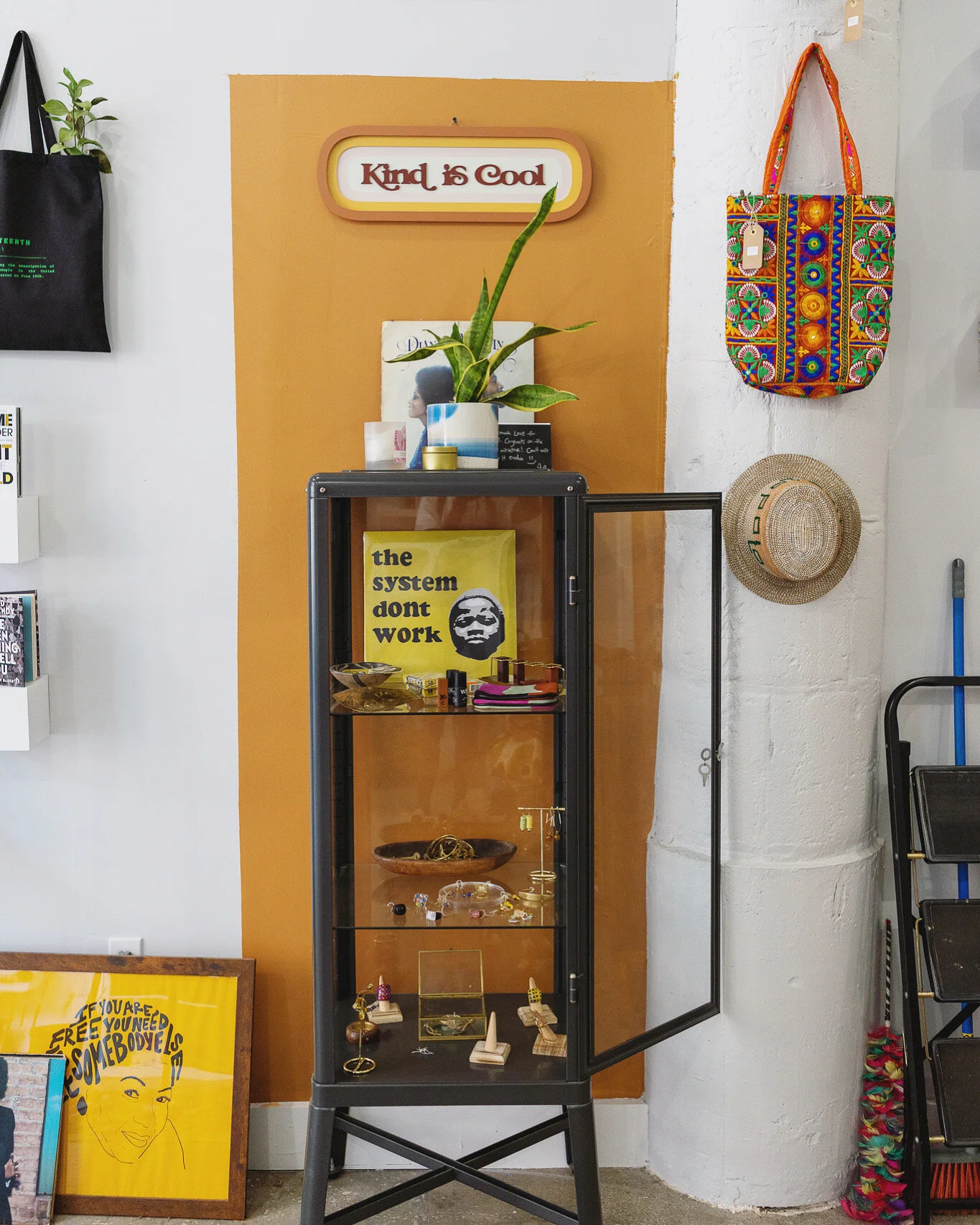 Her small yet airy bookshop boasts cozy seating, colorful textiles, houseplants and art-adorned walls. Shelves and display cases are lovingly stocked not only with piles of books by Black authors — a unique collection of off-the-beaten-path and rare titles, mixed with classics and bestsellers — but also a treasure trove of candles, earrings, apothecary tinctures, bags, tees and other small goods, mostly by Black artisans and makers. The carefully chosen and thoughtfully presented objects invite you to take your time, explore and relax.