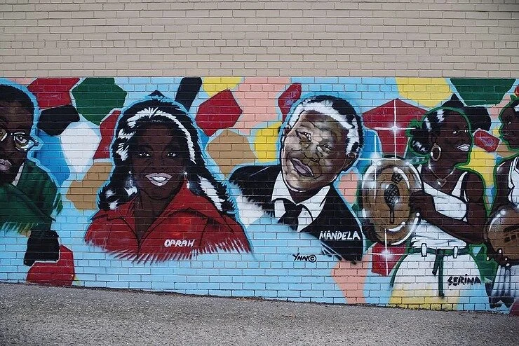 The interplay, Atim explains, is partially a reflection of tensions between old and new styles of street art. “The murals that have been here are really about affirmations of Black people and the struggles we’ve had,” she says. “With newer murals like this, we don’t quite get what the messages are.”