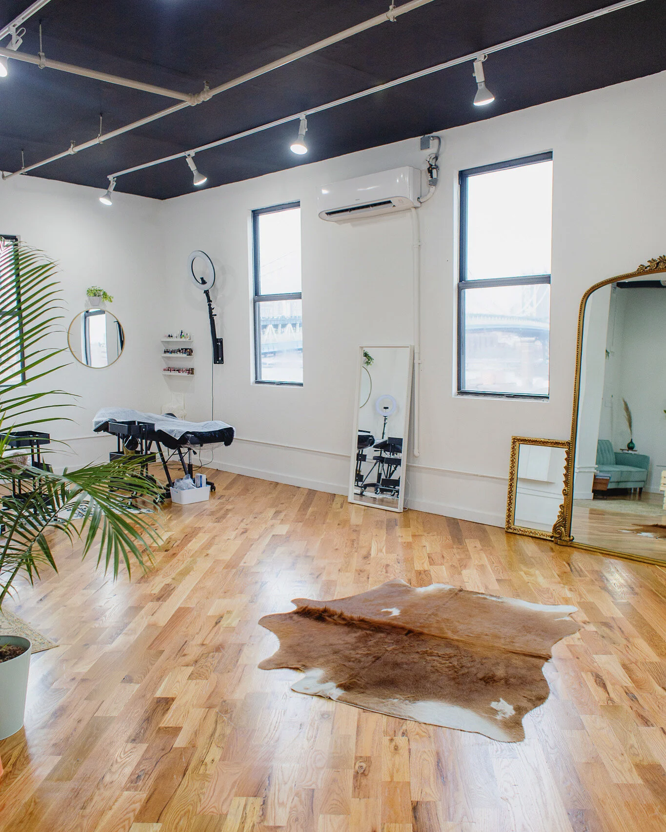 At Browstress, Krystal prides herself on getting people comfortable for their cosmetic tattoos in an intimate, homelike experience. The airy studio is minimalist with warm touches like plants, a comfy couch, tea and palo santo (not to mention a majestic view of the Manhattan Bridge). And as a native Brooklynite who grew up in Fort Greene, where she still lives, the significance of working just blocks away in DUMBO is not lost on her.