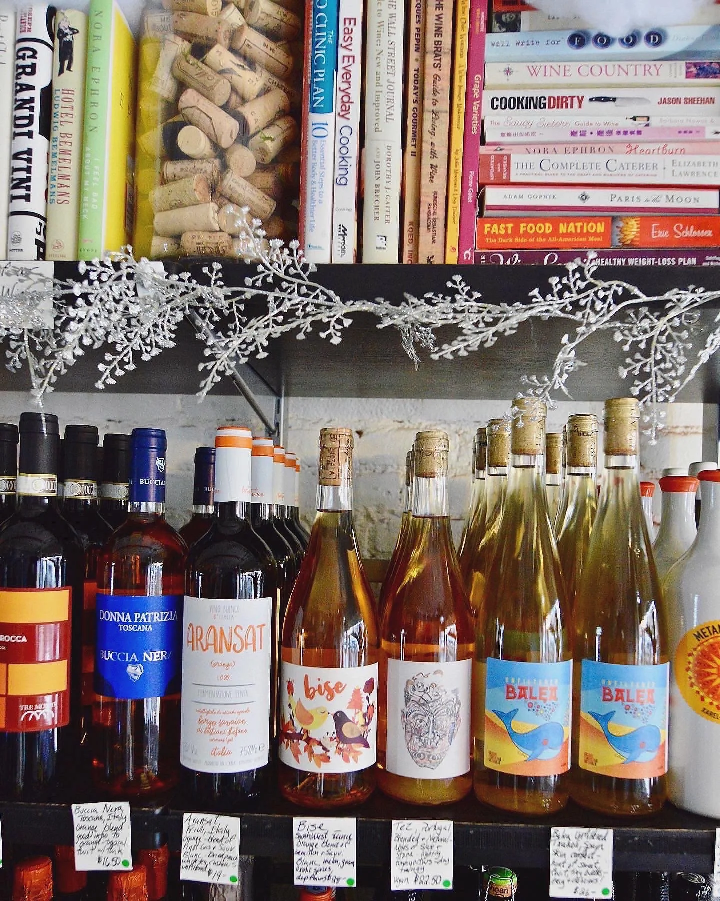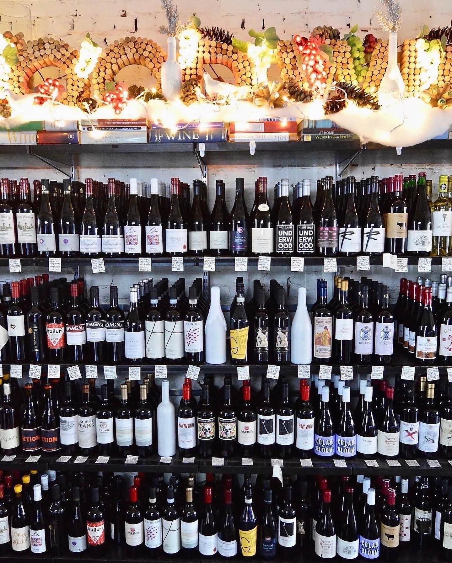 At Good Wine, Heather wants you to feel welcome, above all. “I’m constantly trying to demystify the store,” she says. ”Before COVID, we had food pairing classes that I’d cater and tastings almost every day to lower the barrier of entry.” Decked with seasonal white lights and ornaments, plus Heather’s entire cookbook collection, the shop has a rustic feel and warm atmosphere. It’s like visiting a friend’s home.