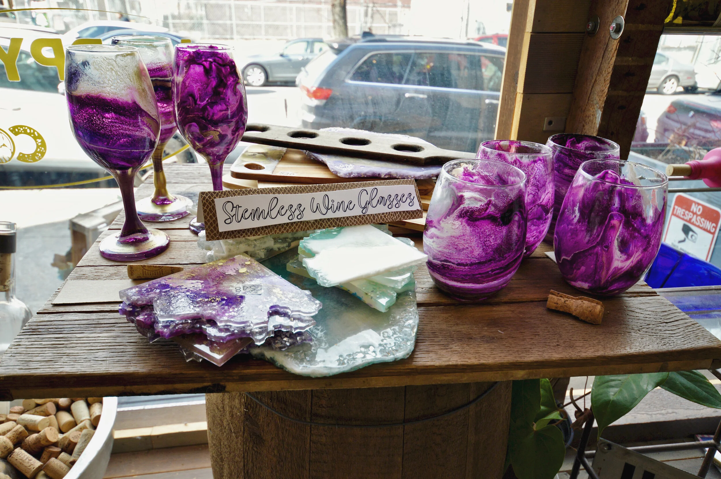 “The wine and spirits industry is such a white male-dominated industry,” says Sunshine, who also carries an intentional selection of products made by women. “In this space I wanted to create a platform for Black and minority-owned wines and spirits.” Be sure to also check out the shop’s gifts and crafts, including wooden Biggie coasters and marble wine glasses by D&S Craftworks, luxurious soy candles by Love Notes, and more from local artists.