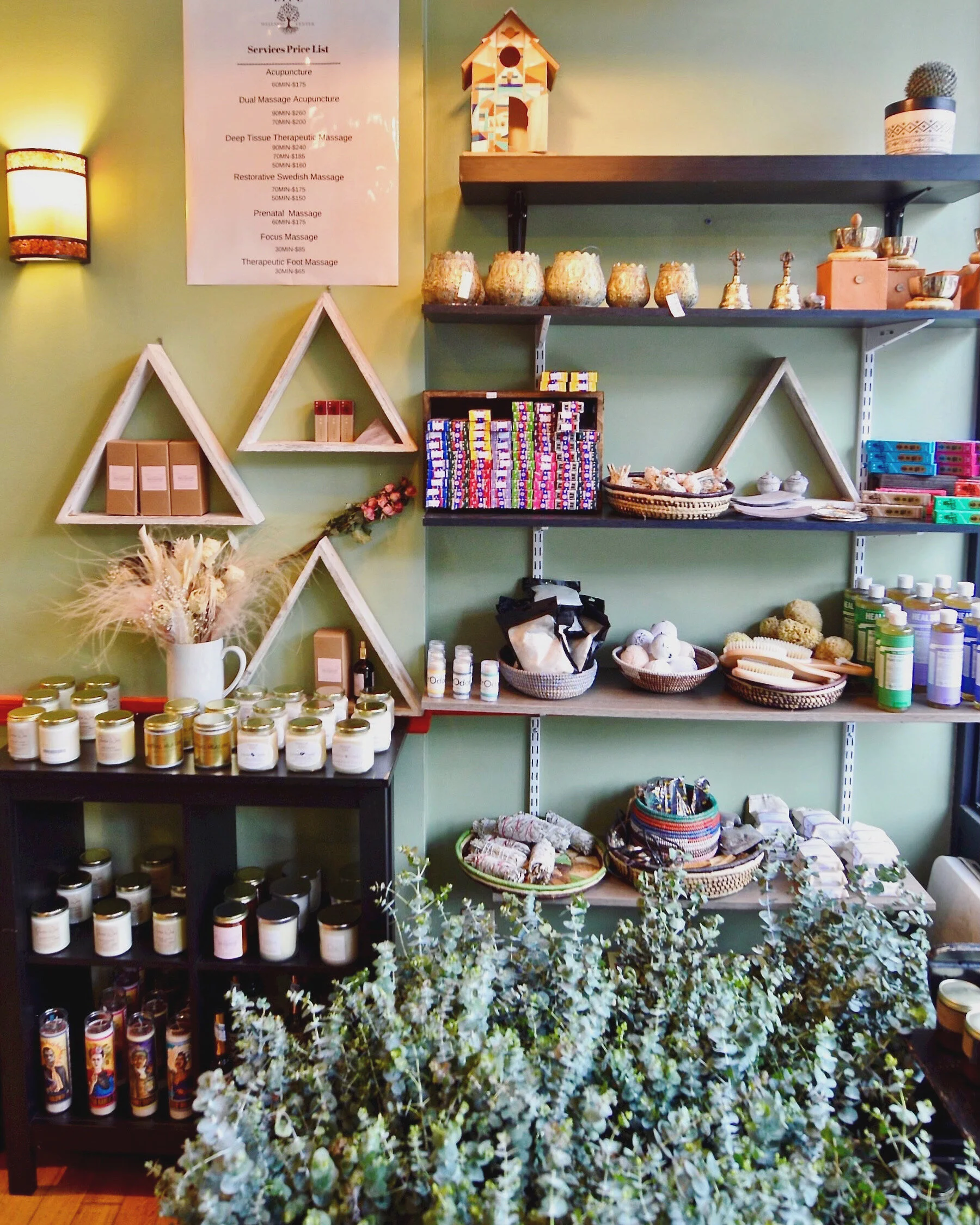 While providing serious support for physical pain, Ade and Khadijah are equally concerned about their community’s emotional wellness. The pristine, eucalyptus-scented environment of Life Wellness Center alone — from the storefront apothecary carrying medicinal herbs, curative teas, elixirs and tonics; to its inviting backyard where clients can relax, plus buy lush plants and flowers — creates an immediate sense of calm.