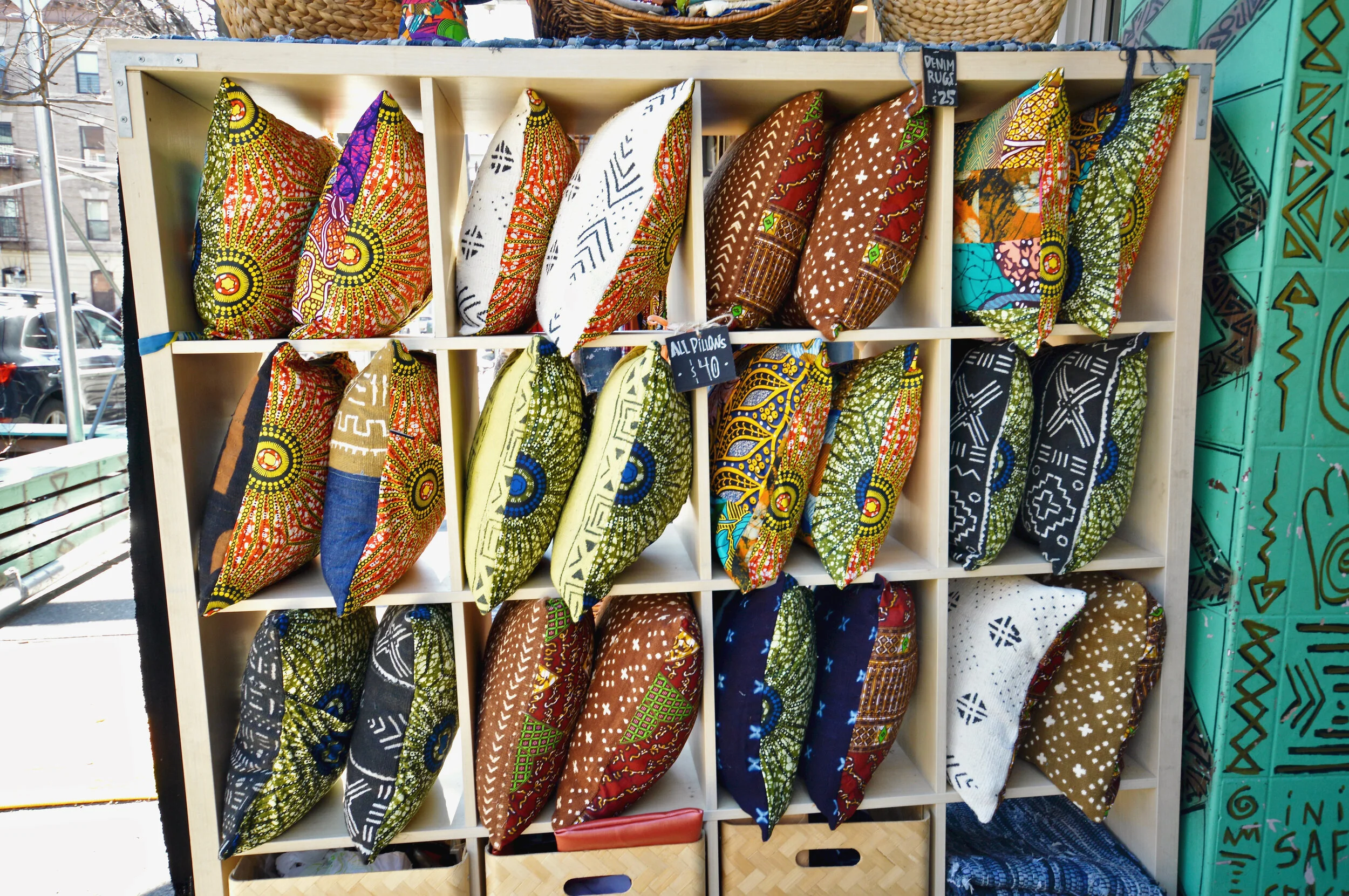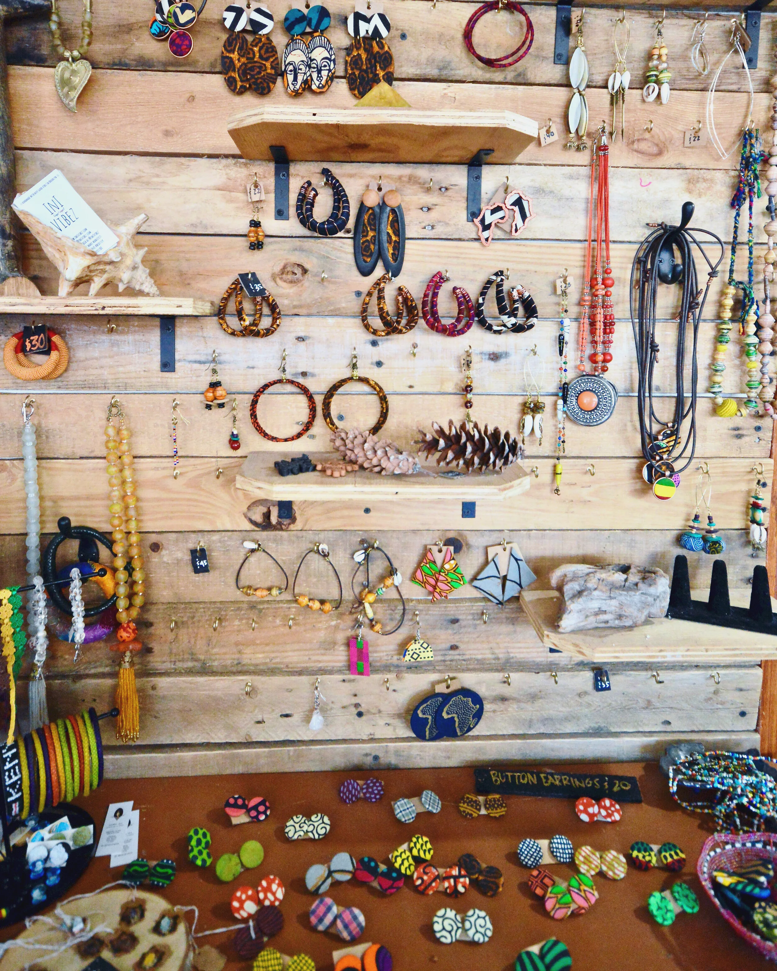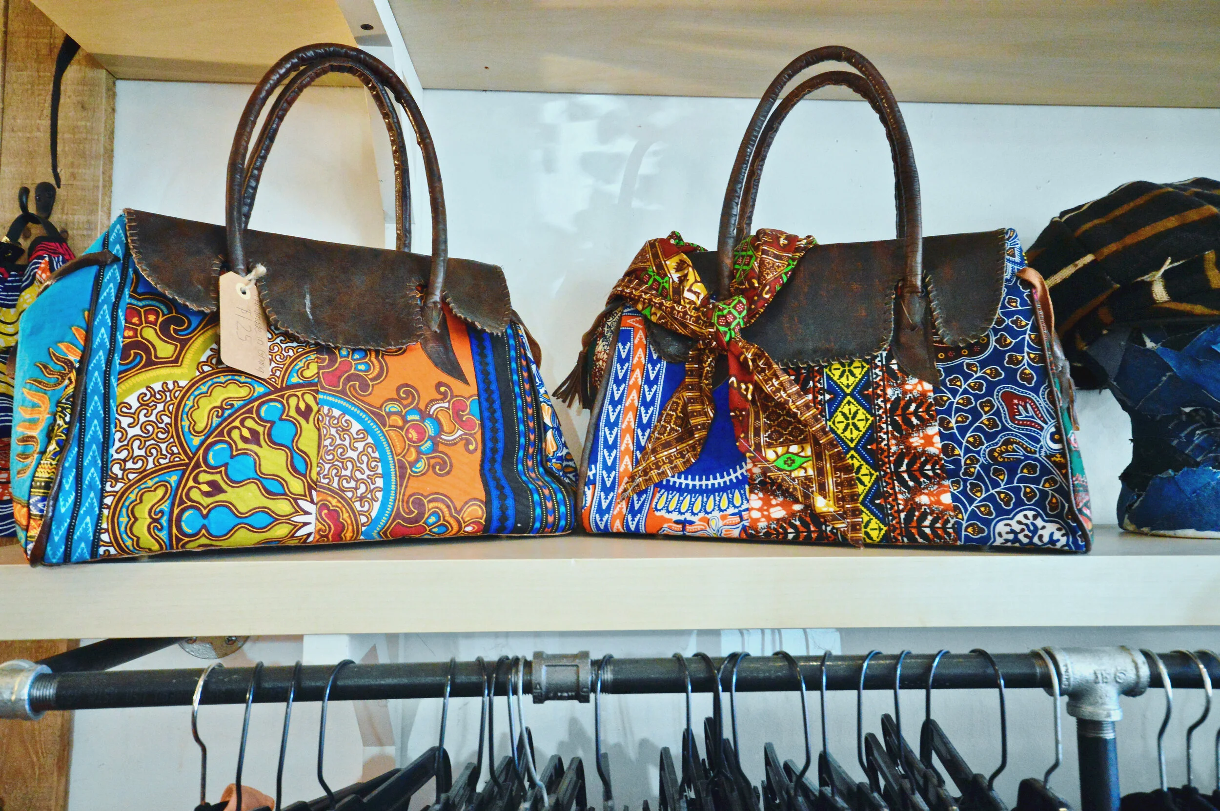 The highly adaptable store (all of its racks, tables and display shelves are on wheels, allowing for easy transformation) is packed with a colorful inventory of one-of-a-kind finds: tops and dresses sewn from African textiles and hand-dyed fabrics, updated vintage denim, batik bags and leather medicine pouches, beaded jewelry, mudcloth belts, patterned throw pillows, handwoven baskets, small-batch cosmetics, greeting cards and hand-poured manifestation candles.