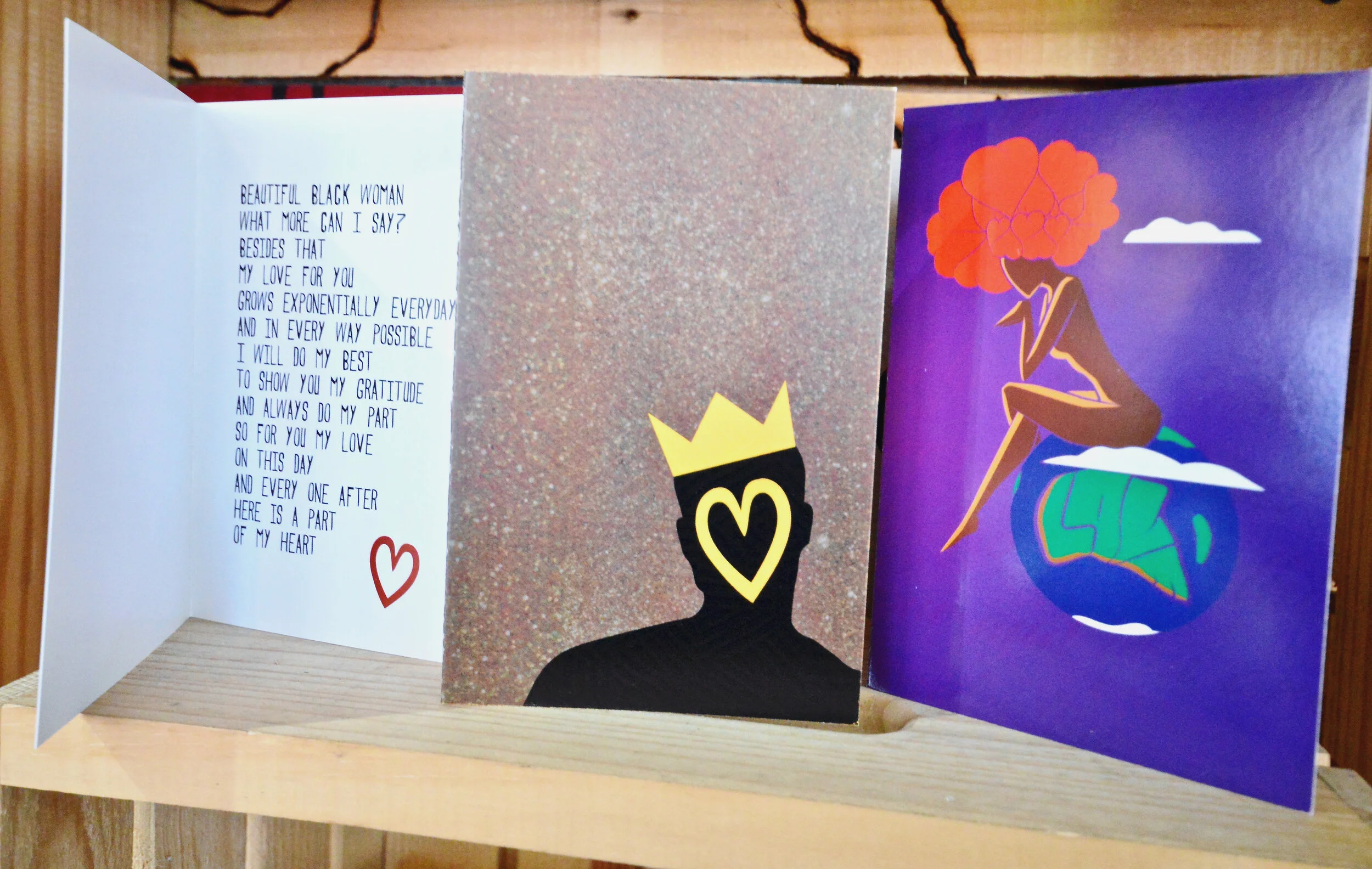 So what is Make Manifest looking for in the brands they carry? “It’s cool items, but also things with a lot of intention,” Isha says, citing crystal-studded full moon candles by Essence of Ase, poetry-filled Black greeting cards from Adeyemi Artistry, brands that use African fabrics in contemporary ways, and a recently sold-out graphic tee featuring Sade with an AK-47.