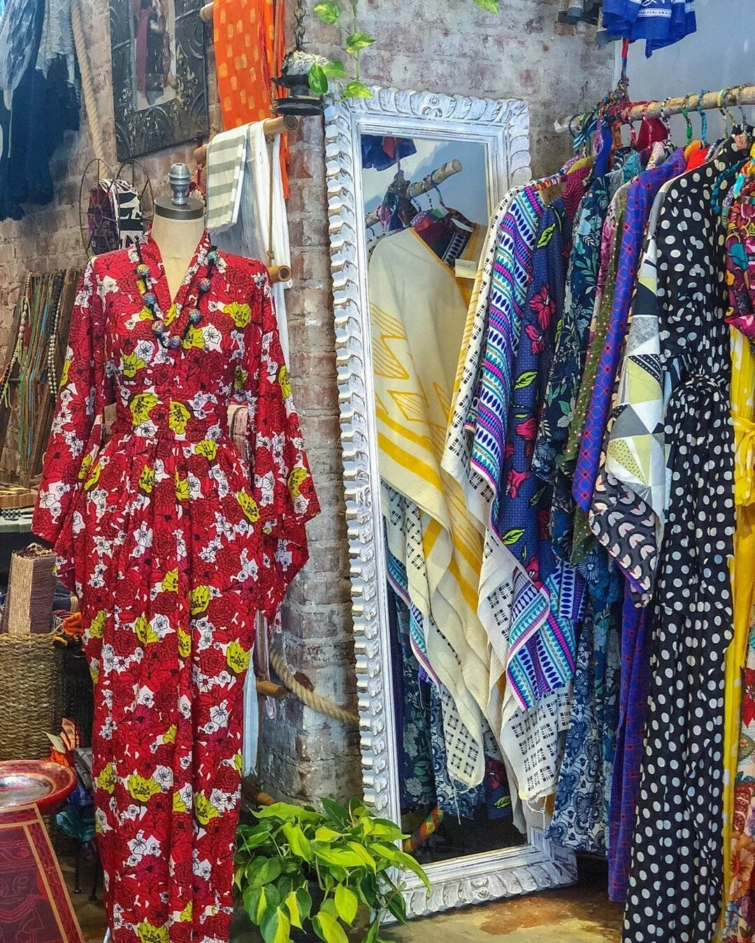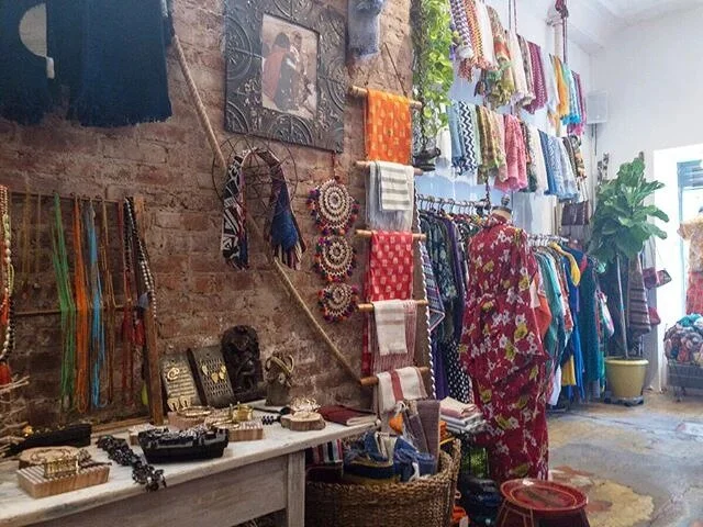 Martine’s Dream is a high-ceilinged space bursting with Hardy’s original designs and unique finds: easy-to-wear dresses, kimonos, caftans, jumpers, tunics, trousers and scarves, as well as brass jewelry, handbags, woven baskets, throw pillows and journals, all intermixed among potted ferns and vines. But Hardy initially didn’t want a physical shop. With a number of unsatisfying nine-to-fives under her belt (video store manager, receptionist, merchandising director for a hat company), she was content showing her collections at markets and festivals in between her frequent travels. “I’m naturally nomadic and want to be barefoot most of the time,” she says with a laugh.