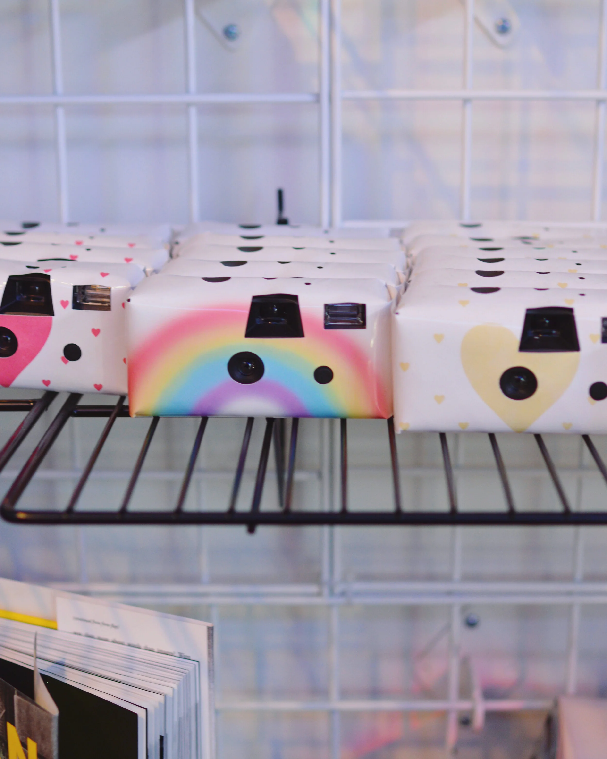 Along with traditional film and cameras at accessible price points, Photodom sells handmade film and disposable cameras by BKFI Films — a Brooklyn-based, Black woman-owned company that produces patterned films infusing photos with hearts, confetti, flowers or rainbow flare effects. The store also offers books featuring the work of Black photographers including Gordon Parks and Brooklyn’s own Jamel Shabazz, as well as made-in-house shirts, pins and tote bags.