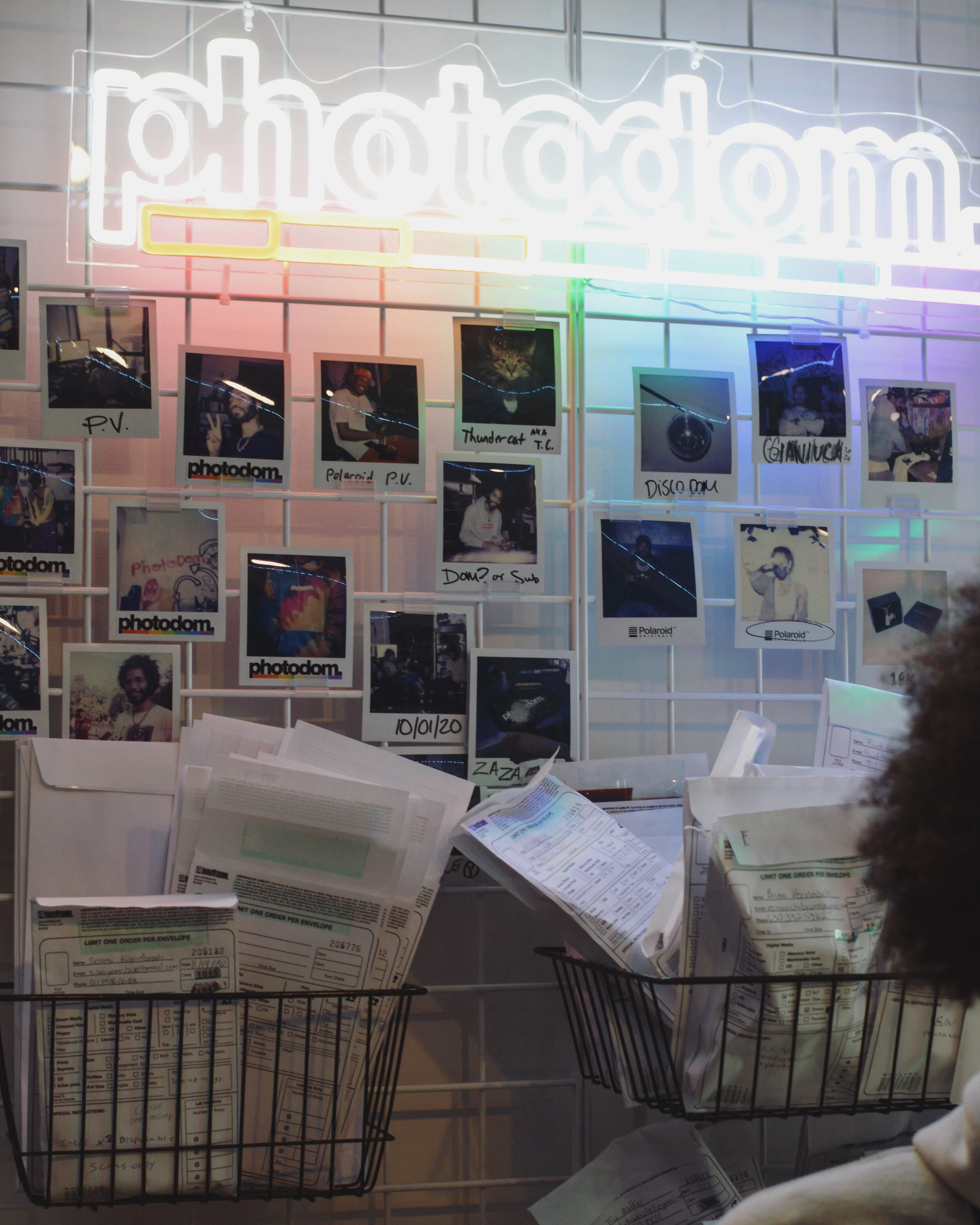 At less than 300 square feet, Photodom is small but mighty. With grid walls showcasing products from floor to ceiling, its modular layout allows Dominick to pack in a lot. But he also designed the store — illuminated by flickering purple, green and white lights, neon signs and a disco ball — to be an experience.