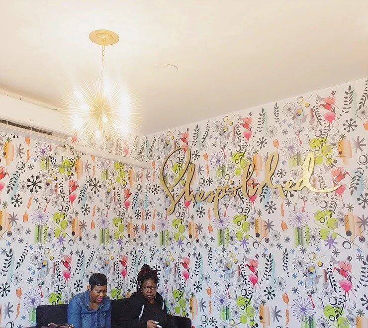 Accordingly, She’s Polished has a modern boutique feel with its clean white space punctuated by an artsy floral accent wall, sleek seating and sunlight spilling through floor-to-ceiling windows. Leaning into the broader definition of “polished,” the salon does more than nails — a downstairs area also offers hair services (relaxed, natural and weave styles) and lashes.