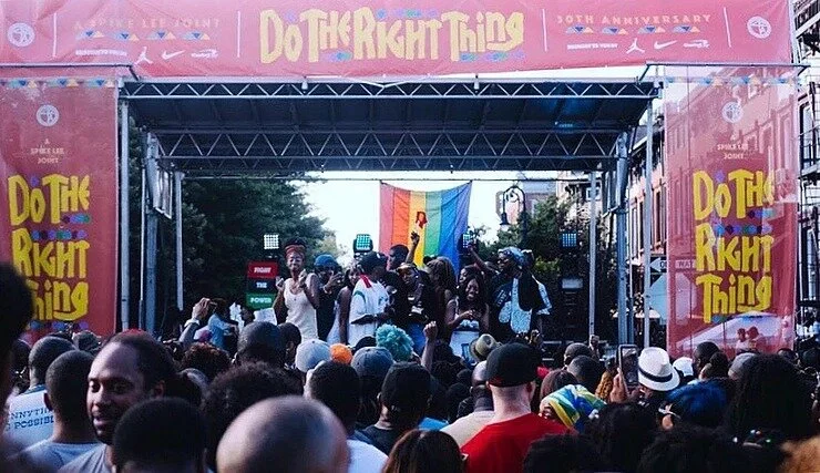 It was nothing but Black excellence, love and power in Bed-Stuy yesterday at Spike Lee’s block party celebrating the 30th anniversary of “Do The Right Thing.” Held on the Stuyvesant Avenue block where the 1989 film was shot, between Quincy Street and Lexington Avenue, a packed crowd rocked for hours to DJ Spinna and DJ Scratch (who never let their feet off the gas), as well as surprise performances by Chuck D and Maxwell. While Spike held court as the party’s emcee, cast members Rosie Perez, Giancarlo Esposito, Danny Aiello, Roger Guenveur Smith and others shared reflections on his masterwork — still profoundly relevant 30 years later — surrounded by stoop dwellers, nutcracker peddlers, double dutch jumpers, rainbow flags honoring WorldPride Day, “Fight the Power” picket signs, and just all-around beautiful Black people. ⠀