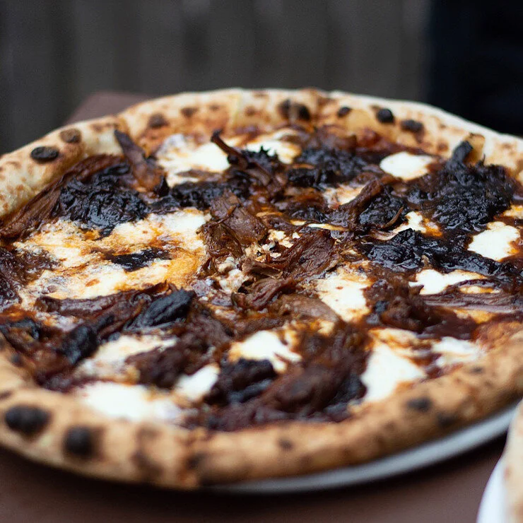 Bright, funky and whimsical (with a spacious backyard dining area), ZuriLee is an ode to Paul and Jermaine’s favorite things. The restaurant is named after the middle names of their daughters. The ZuriLee logo, massively emblazoned over one wall, is a bicycle crank — a nod to the brothers’ career as elite professional cyclists. And eagle-eyed diners will spot several menu items named after their beloved Air Jordans: the classic Margherita, for example, is the Bre(a)d 1, a reference to the classic Bred 1 sneaker, and the Columbia 4, named in honor of the white Jordans, is a white pie with four cheeses and spicy honey.